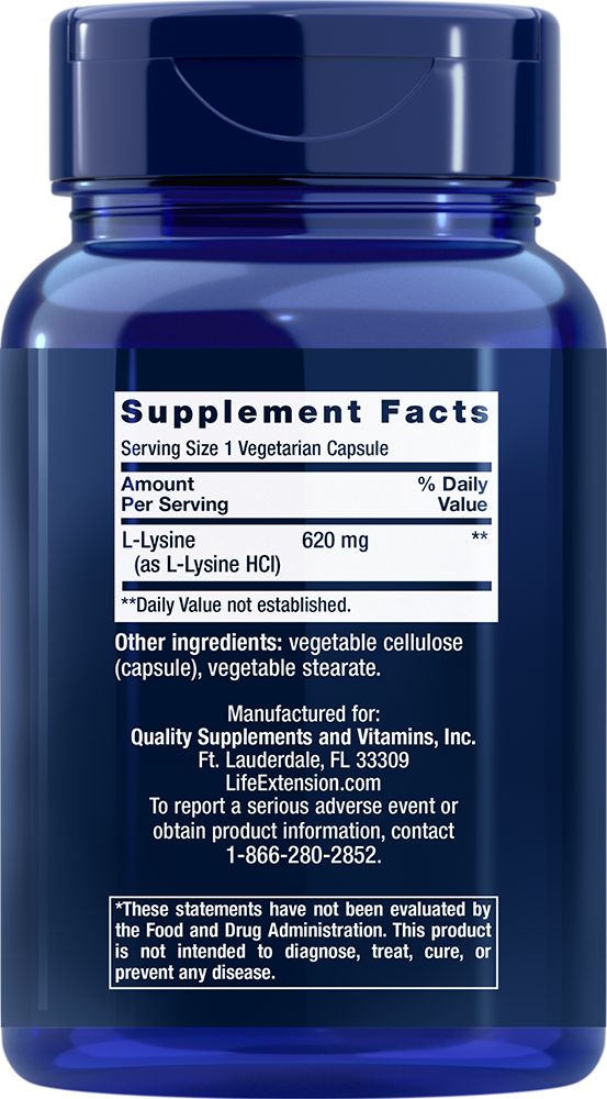 Life Extension – L-Lizină, 620 mg – 100 capsule