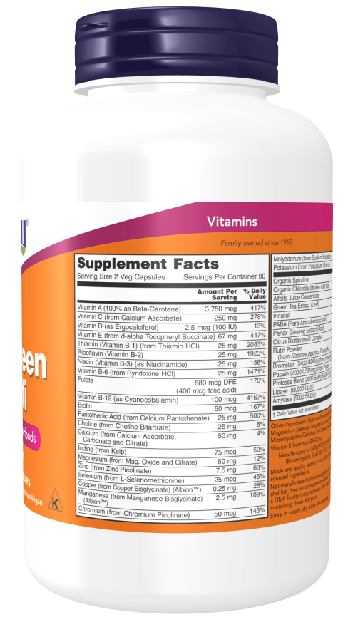 NOW Foods – EcoGreen Multi, fără fier – 180 capsule